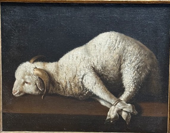 Agnus Dei (c.1635) Francisco de Zurbarán. “Lamb of God” In a museum, among many other obviously devotional pieces, this one is easy to overlook or think that it might be out of place. But if you stop and reflect on it for a minute, it becomes extremely powerful. The innocent and helpless lamb, prepared for the slaughter, has accepted its fate as Christ accepted his.